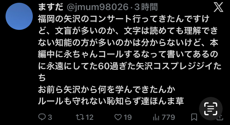 ファンではないでしょう😡と当時思いましたが、青春を共に矢沢永吉の歌が寄り添ってきた。次世代にカッコイイファンの体制を見せてあげてくださいね。